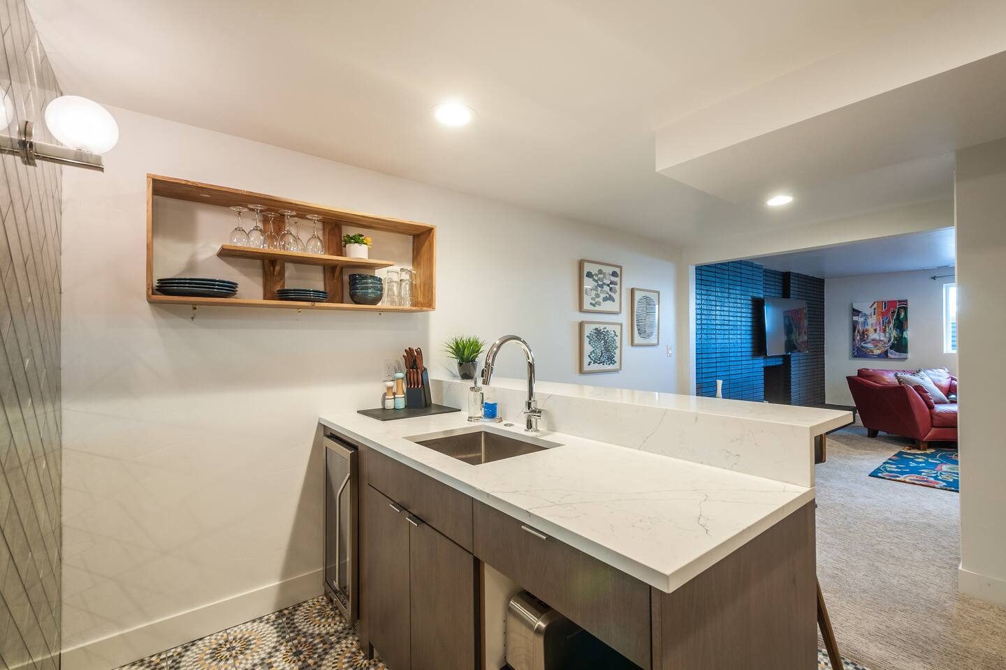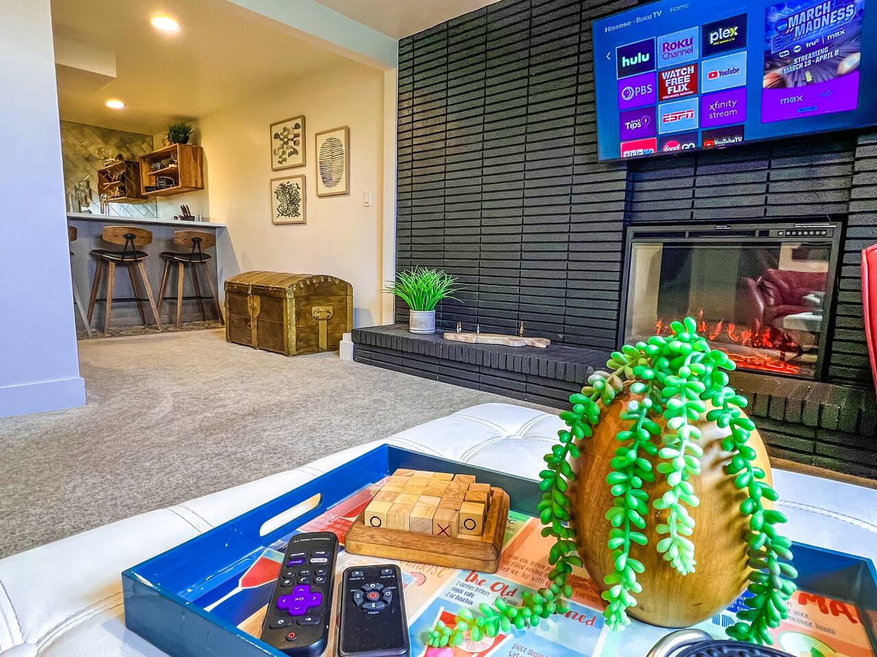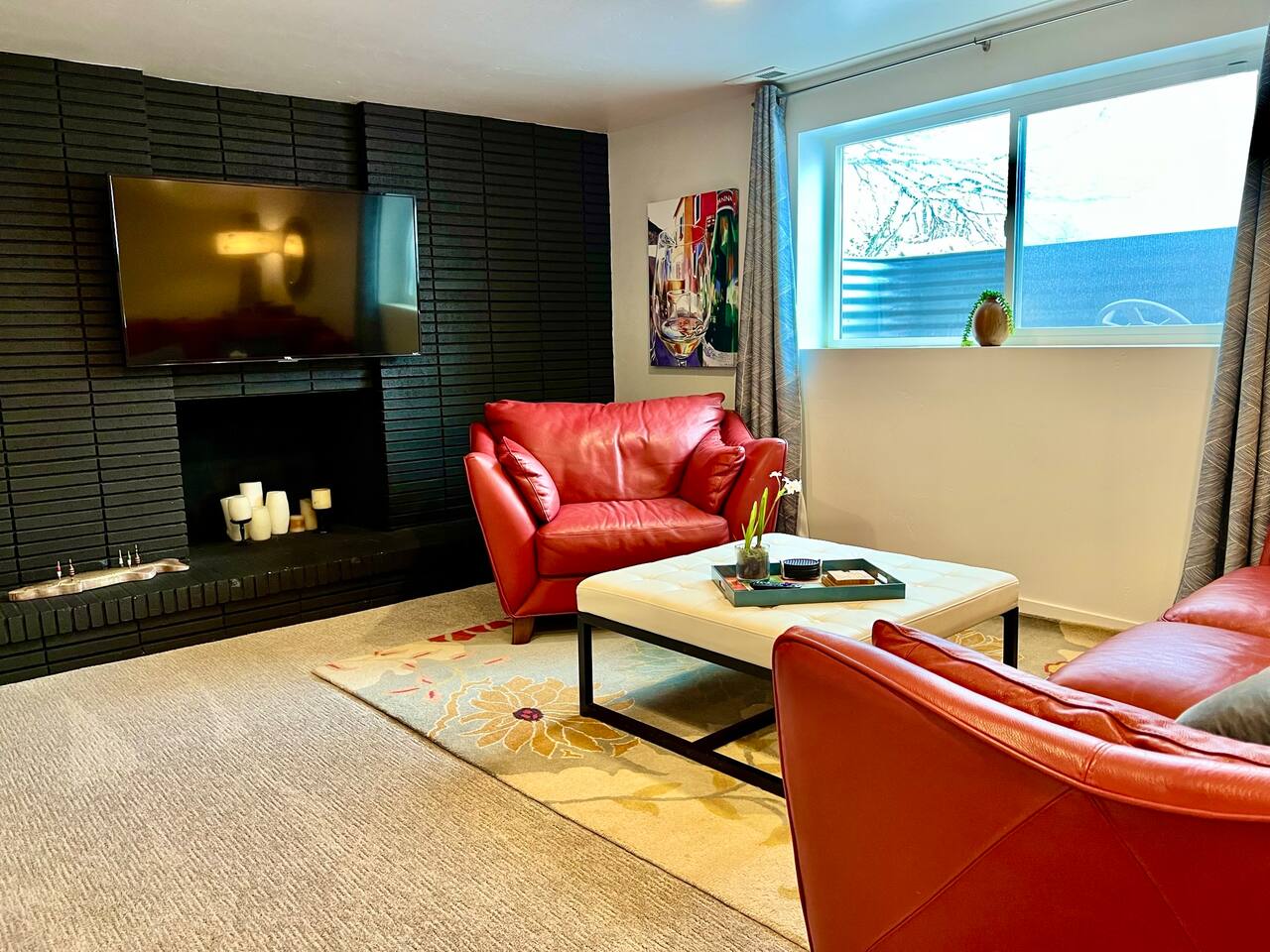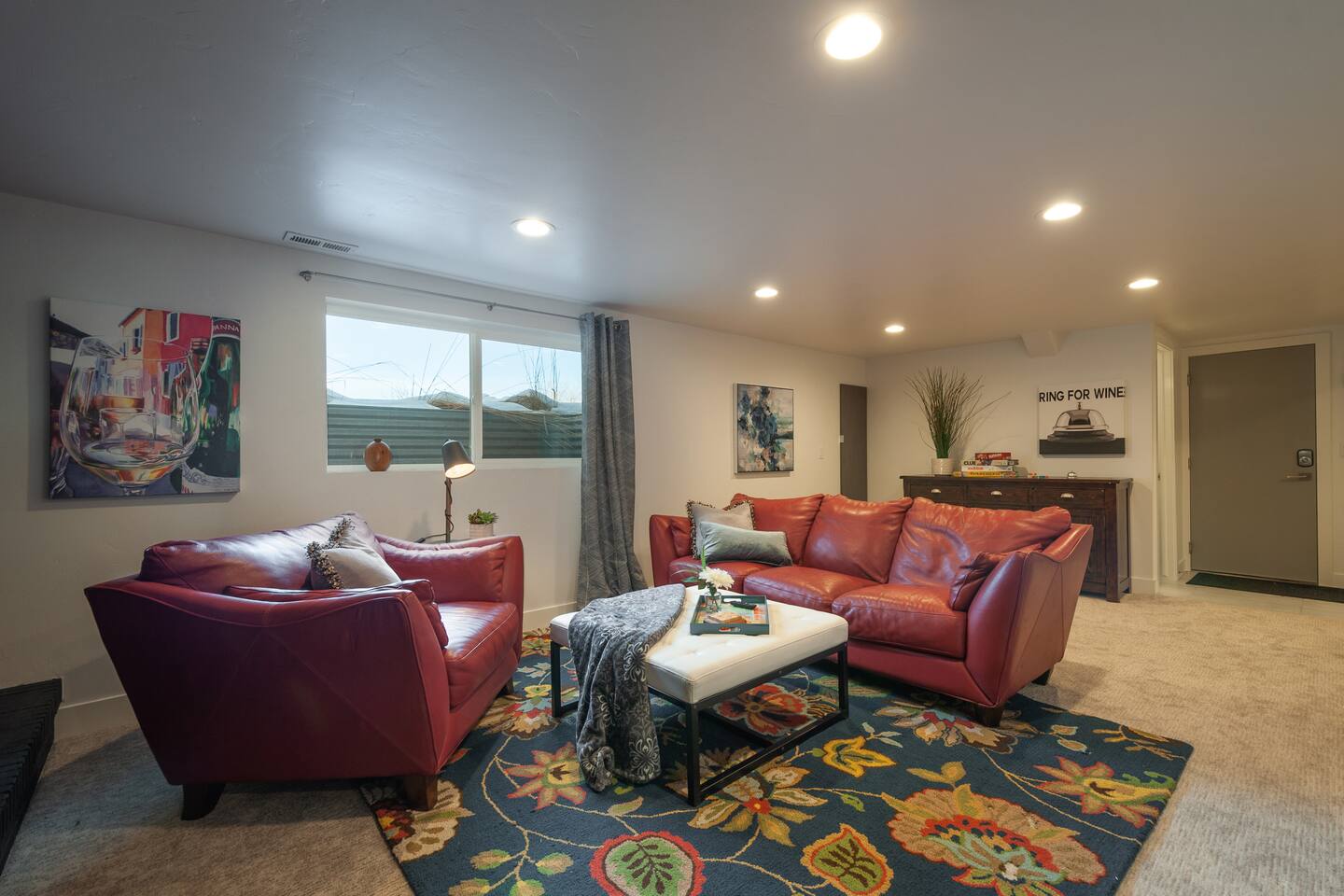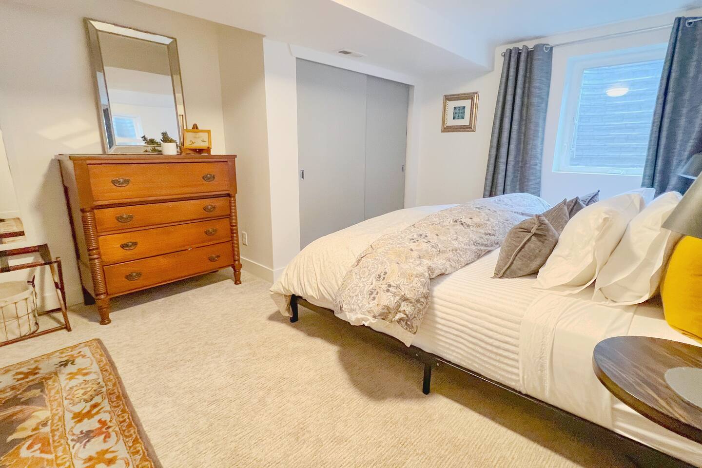 ♥ Private Basement: The spacious and completely refinished basement is exclusively dedicated to Airbnb guests, ensuring a clean and welcoming environment. ♥ Separate Entrance: Enjoy privacy with a separate entrance through the garage, along with a designated space to store skis, bikes, or other gear. Living Space: ♥ Bedrooms: Two comfortable bedrooms featuring a king and a queen bed for a restful night's sleep. ♥ Entertainment: A spacious family room equipped with a Roku TV, PlayStation, and a collection of board/card games for your entertainment. ♥ Laundry Facilities: Full laundry facilities provided for your convenience. ♥ Kitchenette: A small kitchenette with essential amenities, including a sink, microwave, toaster, electric tea kettle, coffee station, small fridge, and a single countertop burner. Please note, there is no traditional stove, oven, or dishwasher. ♥ Extended Stays: Typically capped at a week, but longer stays can be accommodated with arrangements for shared laundry time.