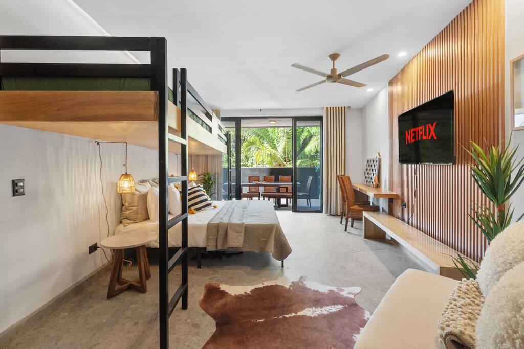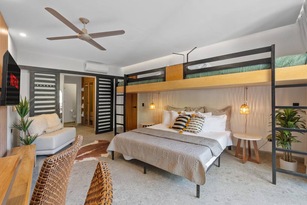 Unwind in our beautifully designed condo, thoughtfully equipped with everything you need for a relaxing and memorable vacation. ✨ Rooftop Oasis – Enjoy the stunning rooftop pool, BBQ area, and yoga space with breathtaking panoramic views. 🚀 Fiber Wi-Fi (1 Gbps) – Stay connected with lightning-fast internet, ideal for remote work or streaming. 🚗 Dedicated Parking – Includes a car parking spot plus a golf cart parking space with charging capabilities. 2-4 seat golf carts only 🛏️ Premium Comfort – Sleep soundly on luxury mattresses with Egyptian cotton sheets and wrap yourself in large plush bath towels. 💧 Water Purification System – Enjoy safe, purified water throughout the building, plus unlimited bottled water. 🏖️ Beach Essentials – Beach chairs and Turkish beach towels are provided for your convenience. 🌟 Prime Location – A short stroll to Sayulita’s best beaches, restaurants, shops, and lively town center. Sayulita is known for its laid-back, bohemian charm—perfect for surfers, artists, and travelers looking to relax and explore. Whether you're here to catch some waves, discover local art, or simply unwind, our condo is the perfect base for your adventure. ✨ Book your stay today and experience the best of Sayulita from the comfort of our luxurious condo!